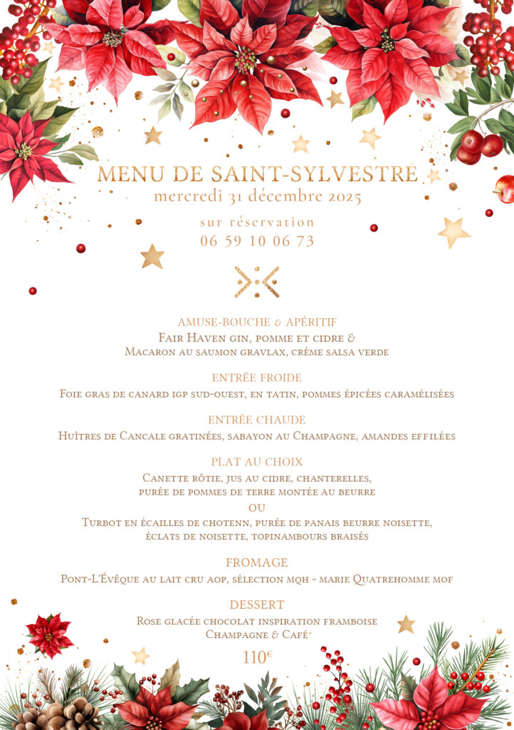 Menu de Saint-Sylvestre – Sur réservation 06 59 10 06 73